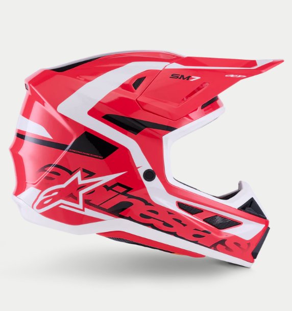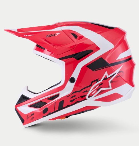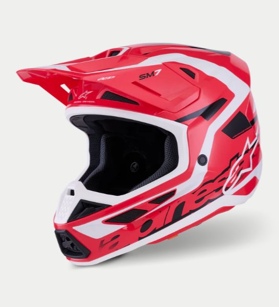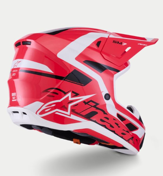 O Capacete S-M7 é projetado para corridas off-road e é otimizado para oferecer a combinação perfeita de ventilação superior e conforto em um capacete leve, enquanto sua concha composta extremamente aerodinâmica proporciona proteção excepcional contra impactos. Além dos sistemas patenteados de Ajuste A-Head e Desprendimento de Viseira da Alpinestars, o S-M7 está equipado com a inovadora tecnologia PLASMA na borda inferior da concha para dissipação de energia ideal em caso de contato com a área da clavícula.