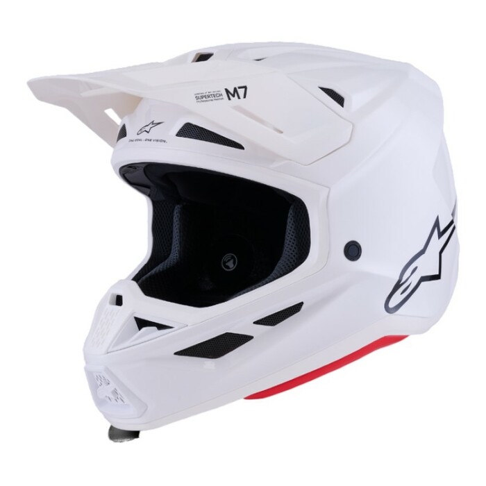 O Capacete S-M7 é projetado para corridas off-road e é otimizado para oferecer a combinação perfeita de ventilação superior e conforto em um capacete leve, enquanto sua concha composta extremamente aerodinâmica proporciona proteção excepcional contra impactos. Além dos sistemas patenteados de Ajuste A-Head e Desprendimento de Viseira da Alpinestars, o S-M7 está equipado com a inovadora tecnologia PLASMA na borda inferior da concha para dissipação de energia ideal em caso de contato com a área da clavícula.