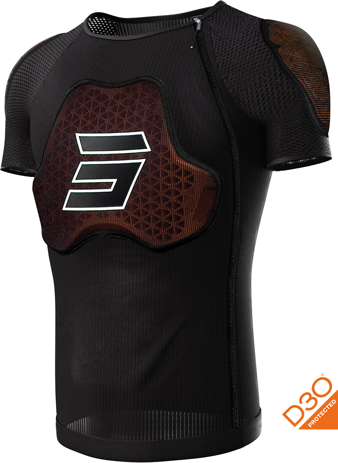 • Costas, peito, cotovelos e ombros com proteção flexível D3O®